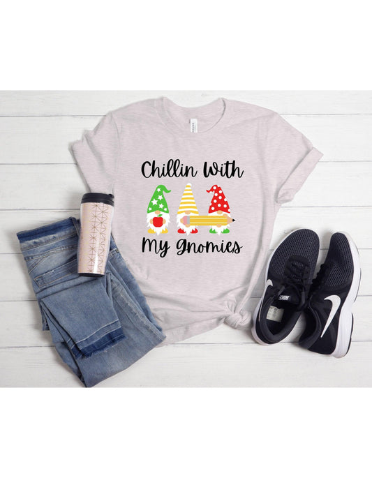 Chillin With My Gnomies Cute Teacher Graphic T-Shirt