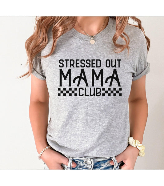 Checkerboard Stressed Out Mama Club Women's Graphic T-Shirt