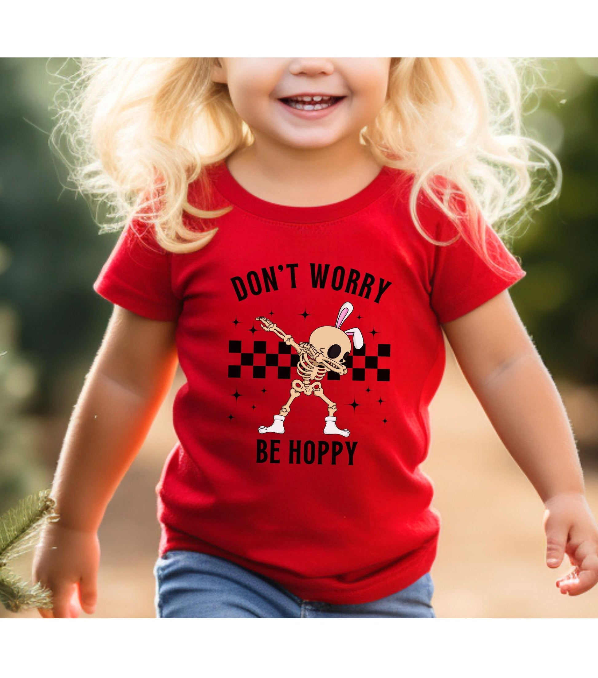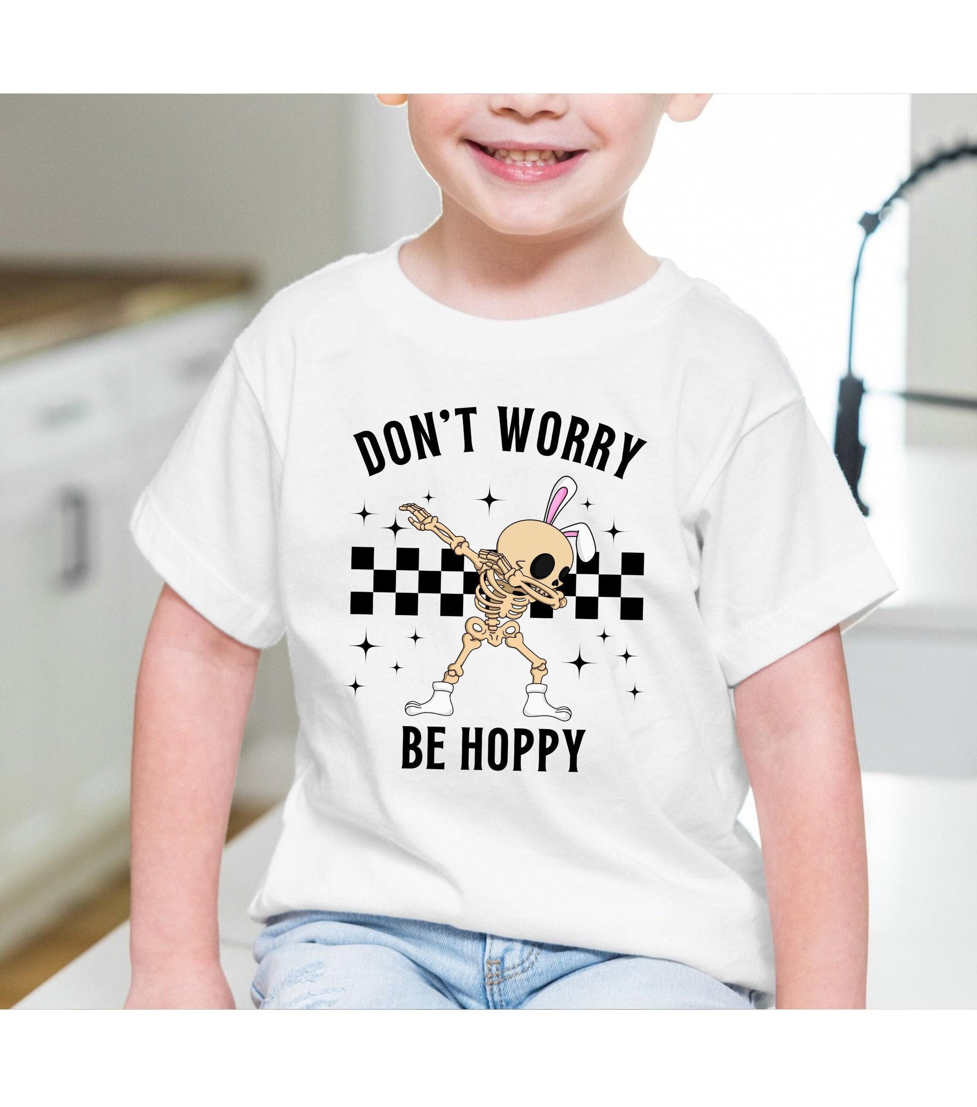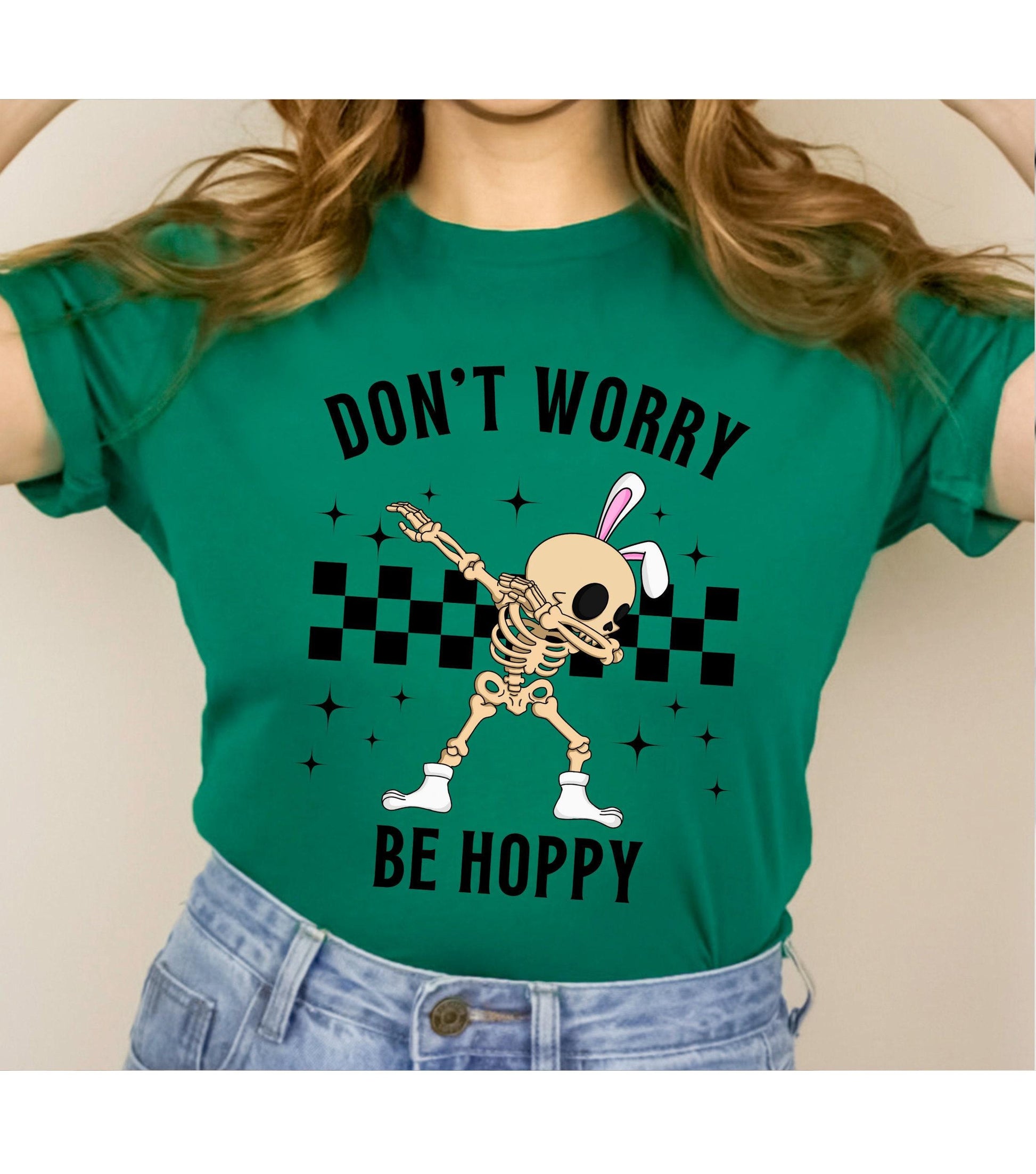 Don't Worry Be Hoppy Easter Bunny Skeleton Graphic T-Shirt
