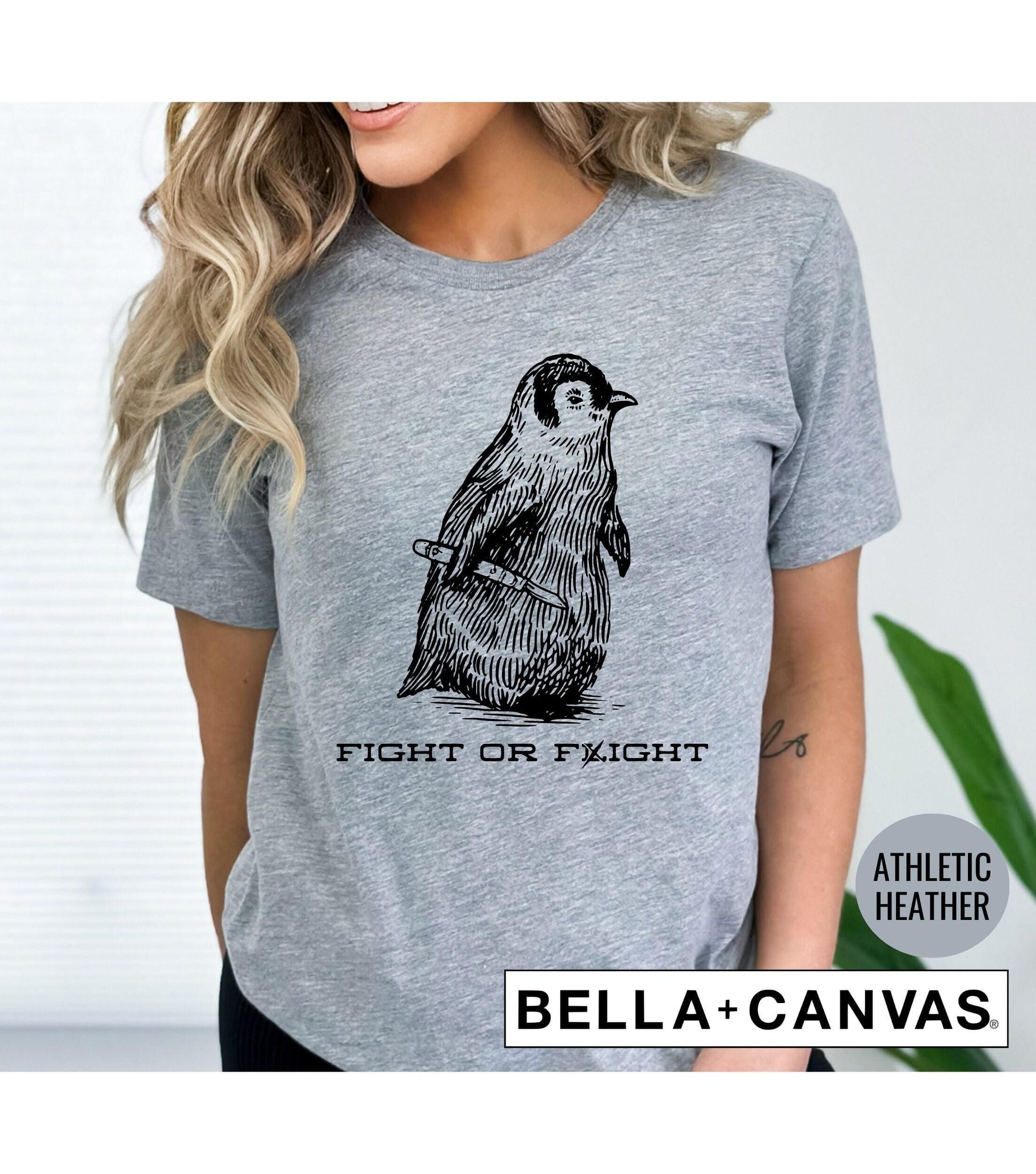 Fight Or Flight Penguin Knife Weird Present Graphic T-Shirt