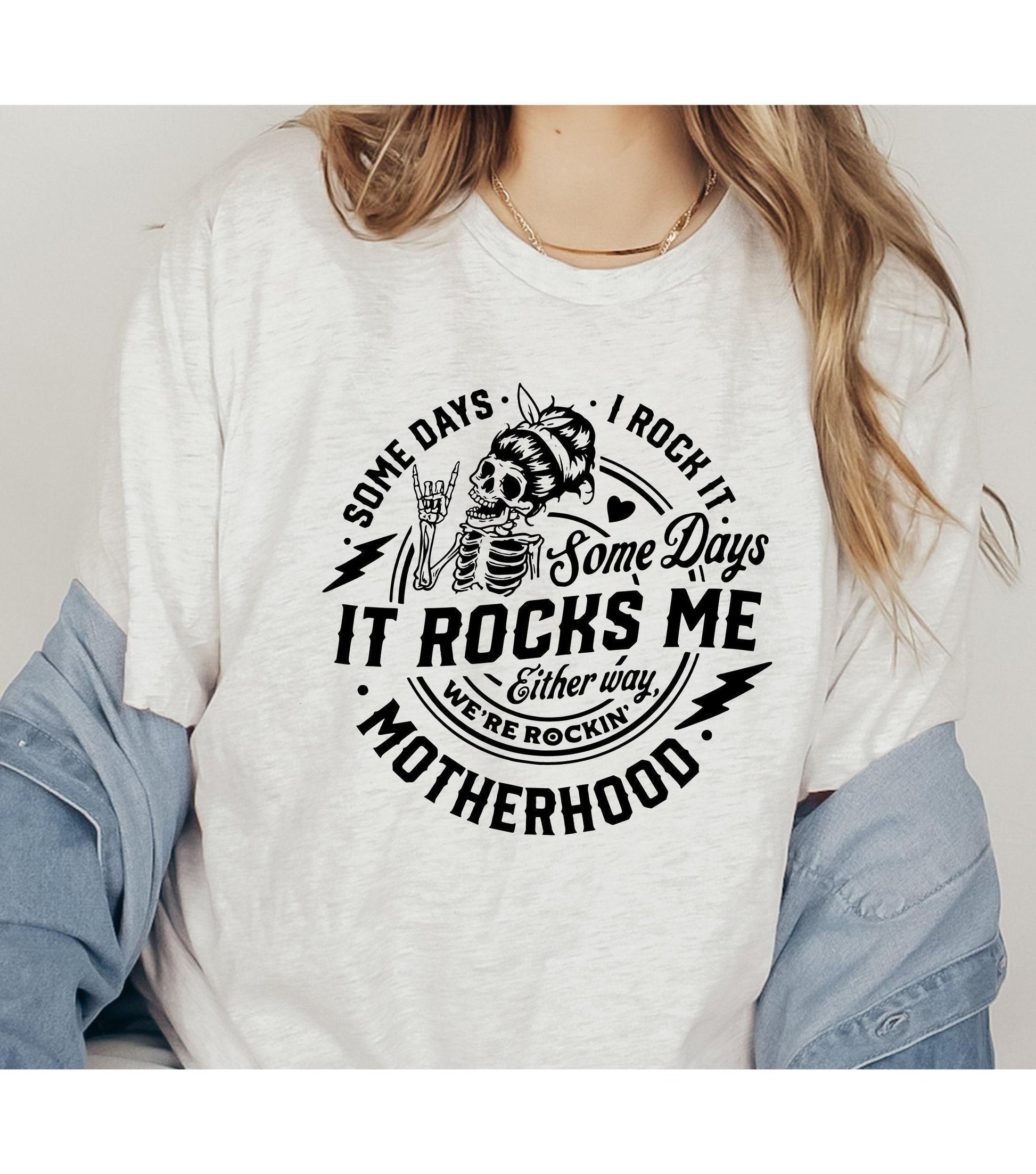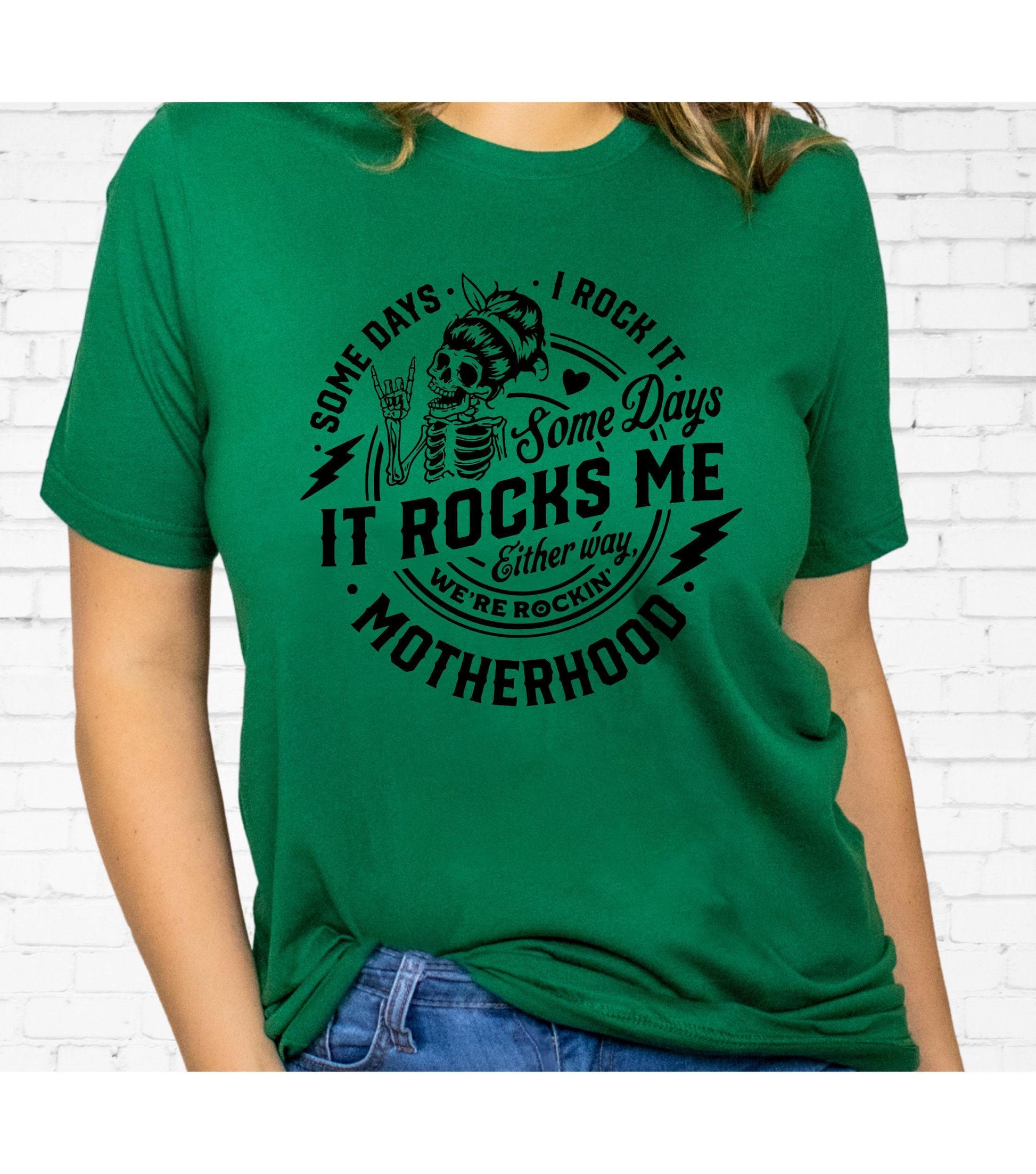 Motherhood Mom Some Days I Rock It Some Days It Rocks Me Skeleton Graphic T-Shirt