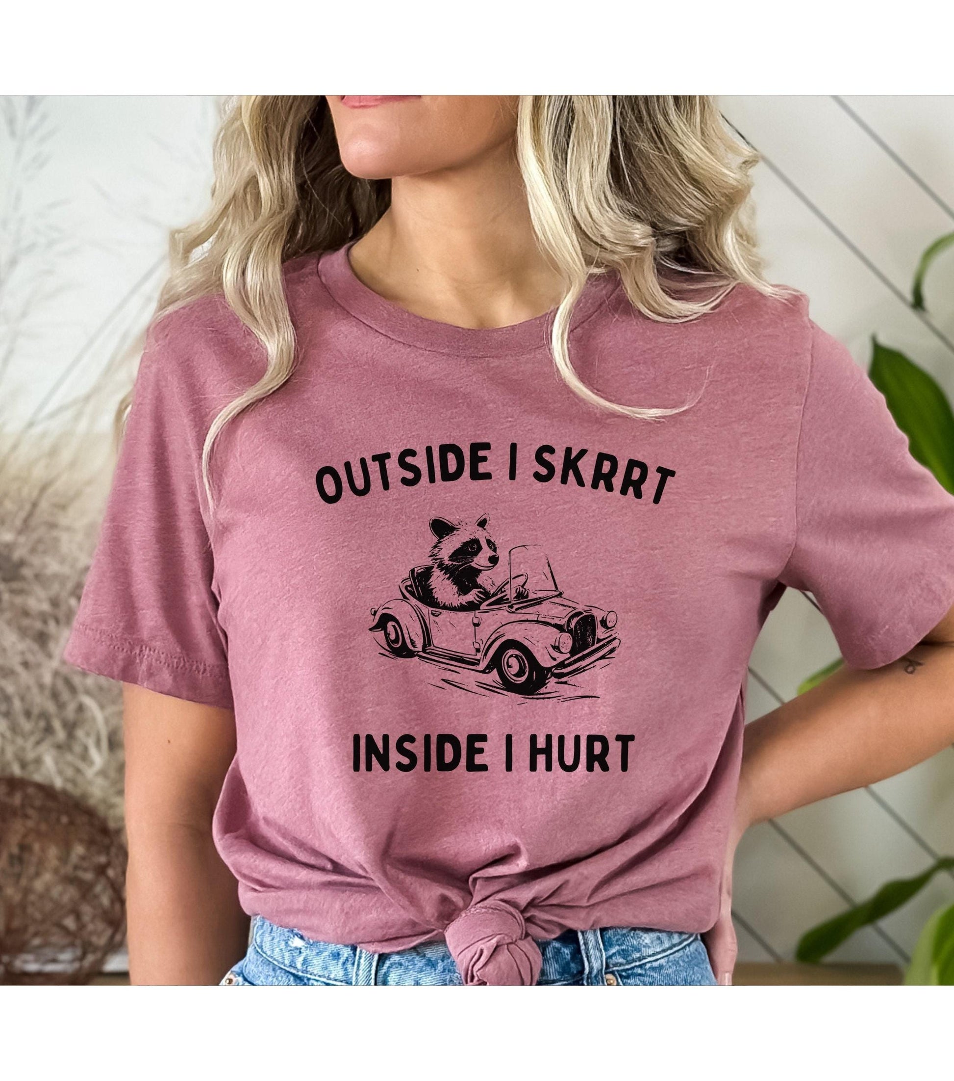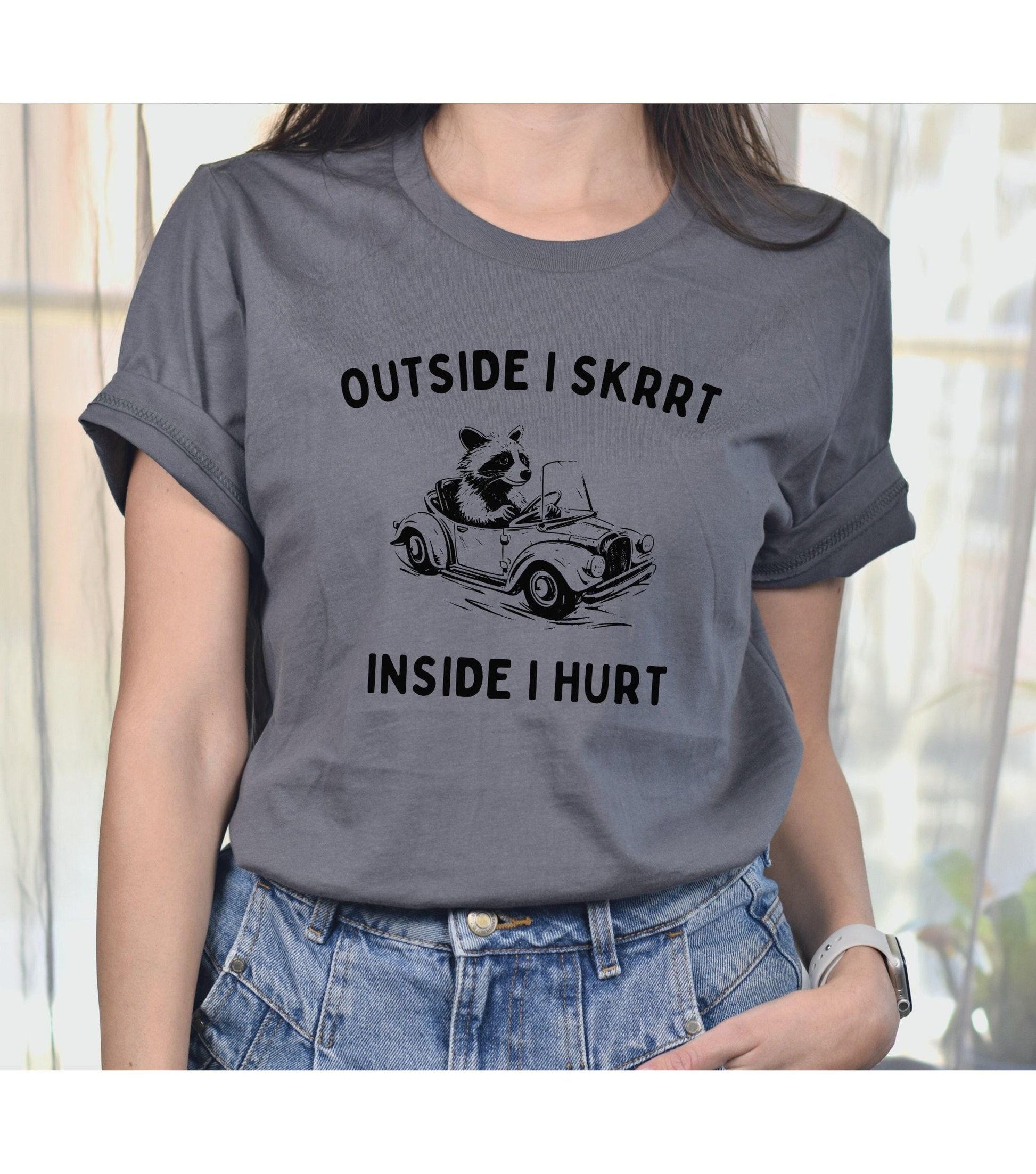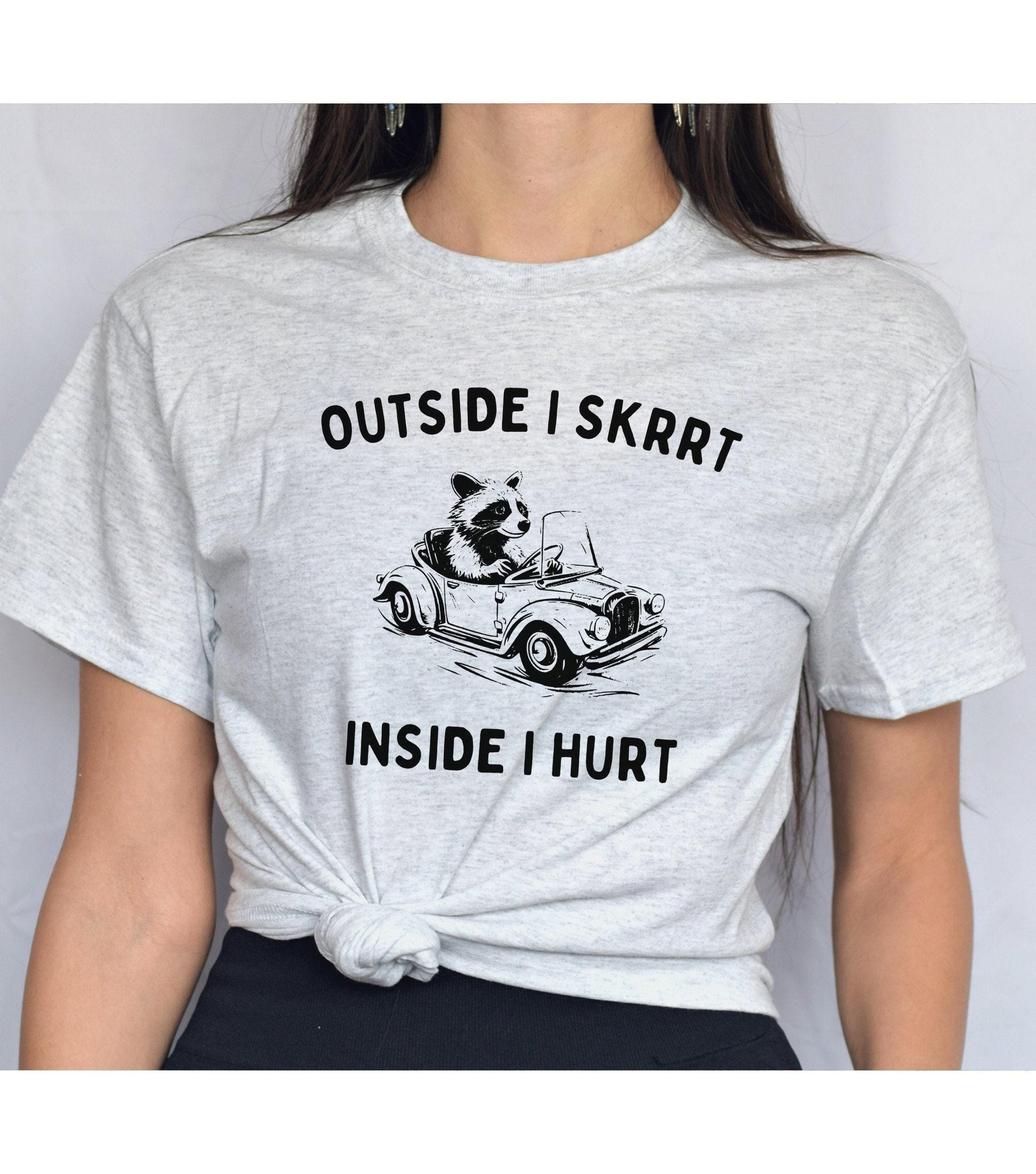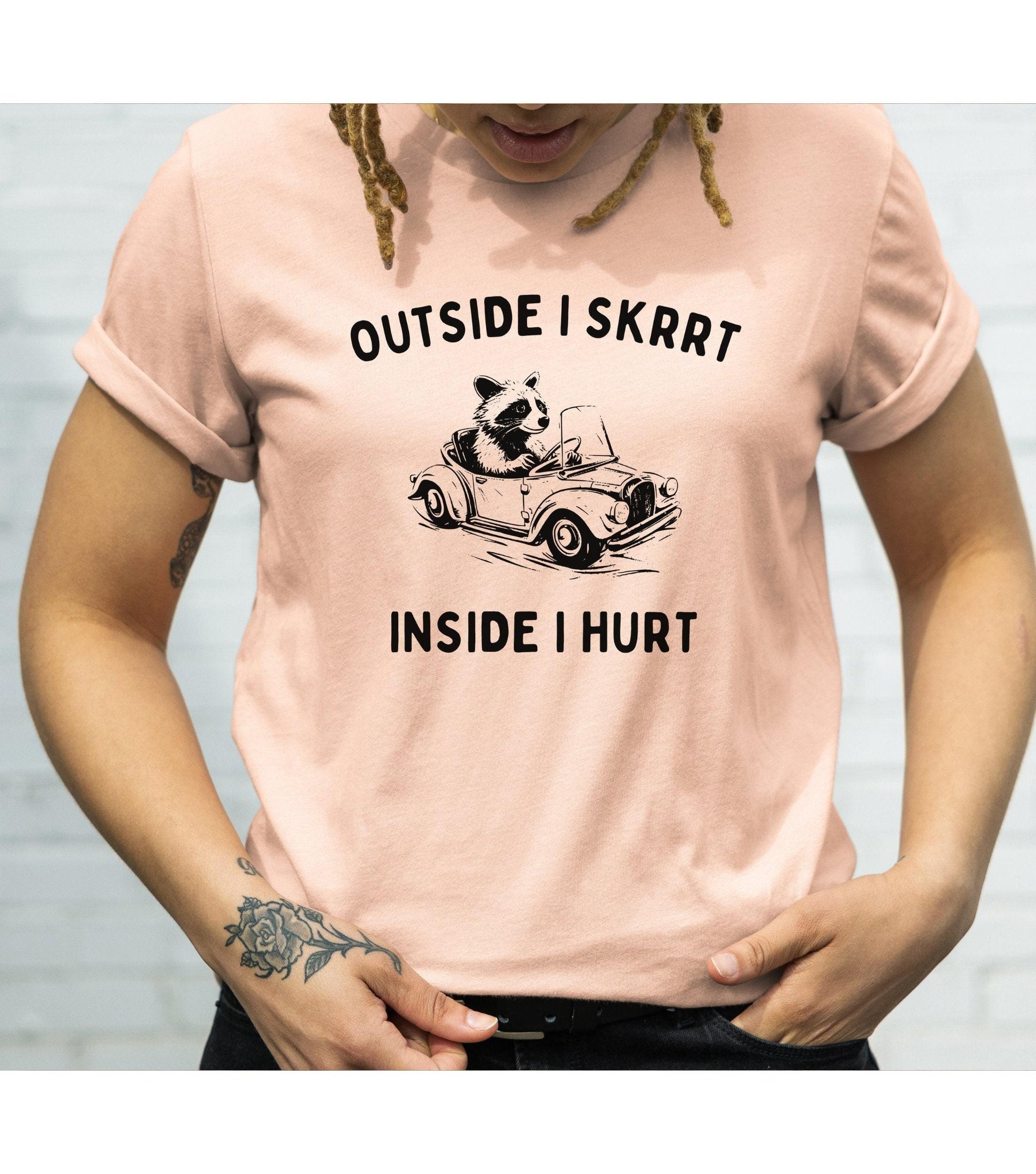 Outside I Skrrt Inside I Hurt Racoon Meme Graphic T-Shirt