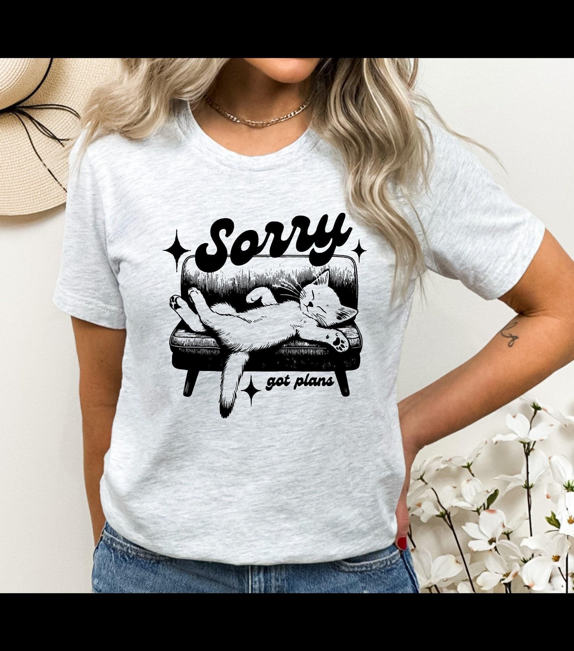 Sorry Got Plans Lazy Cat Graphic T-Shirt